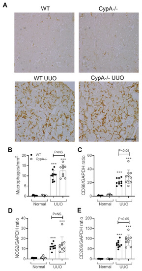2.3. CypA Deletion Does Not Protect against Tubular Damage in UUO