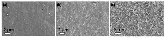 For SEM imaging of surface morphology and for the distinguishing successful layer deposition, samples of pristine and functionalised whey-based laminates were prepared by cutting into small, approximately 0.5 cm × 0.5 cm square pieces. Afterwards, these pieces were attached to the aluminium sample holders with an adhesive carbon tape in order to ensure conductivity. For this purpose, a Carl Zeiss Supra 35VP scanning electron microscope was employed, where the pristine whey-based laminates and functionalised ones were analysed at an accelerating voltage of 1 kV and variable working distance using 30-µm-sized aperture. All the images were taken at the 10,000 × comparable magnifications.