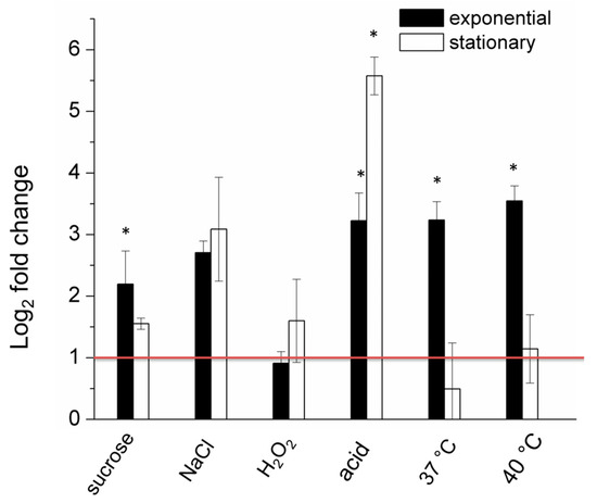 - Guo, M.; Gross, C.A. Stress-induced remodeling of the bacterial proteome. Curr. Boil. 2014, 24, R424–R434. [Google Scholar] [CrossRef]
