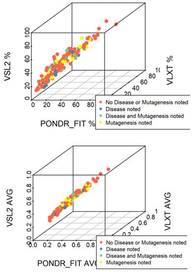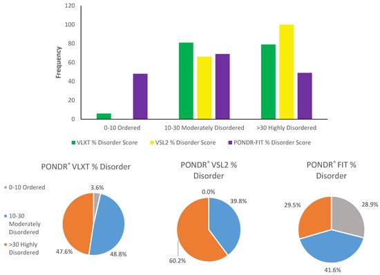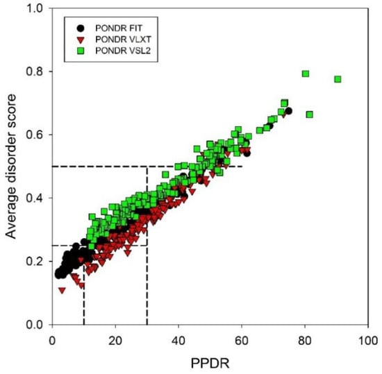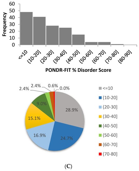 - Midic, U.; Obradovic, Z. Intrinsic disorder in putative protein sequences. Proteome Sci. 2012, 10 (Suppl. 1), S19. [Google Scholar] [CrossRef] [PubMed]