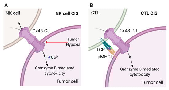 - Hofmann, F.; Navarrete, M.; Álvarez, J.; Guerrero, I.; Gleisner, M.A.; Tittarelli, A.; Salazar-Onfray, F. Cx43-Gap Junctions Accumulate at the Cytotoxic Immunological Synapse Enabling Cytotoxic T Lymphocyte Melanoma Cell Killing. Int. J. Mol. Sci. 2019, 20, 4509. [Google Scholar] [CrossRef]