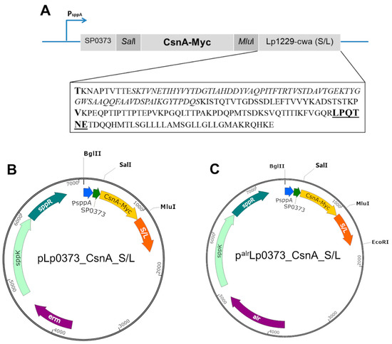 | palrLp0373_CsnA_L | pSIP603 derivative with SPLp0373-csnA-myc-L instead of gusA | This study |