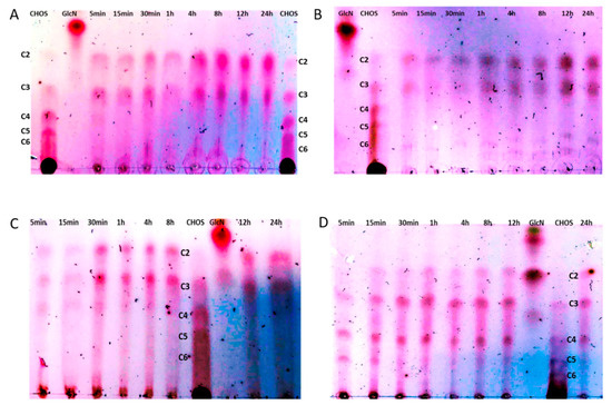 - Pechsrichuang, P.; Lorentzen, S.B.; Aam, B.B.; Tuveng, T.R.; Hamre, A.G.; Eijsink, V.G.H.; Yamabhai, M. Bioconversion of chitosan into chito-oligosaccharides (CHOS) using family 46 chitosanase from Bacillus subtilis (BsCsn46A). Carbohydr. Polym. 2018, 186, 420–428. [Google Scholar] [CrossRef] [PubMed]
