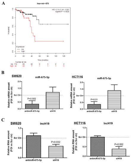 Moreover, the lncH19 is the precursor of miR-675, recently found involved in physiological processes and cancer development, including CRC [,,].