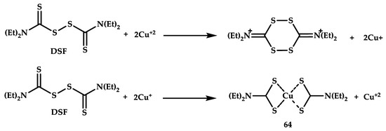 - Lewis, D.J.; Deshmukh, P.; Tedstone, A.A.; Tuna, F.; O’Brien, P. On the Interaction of Copper(II) with Disulfiram. Chem. Commun. 2014, 50, 13334–13337. [Google Scholar] [CrossRef] [PubMed]