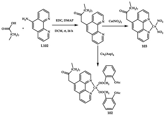 - Wehbe, M.; Leung, A.W.Y.; Abrams, M.J.; Orvig, C.; Bally, M.B. A Perspective – can copper complexes be developed as a novel class of therapeutics? Dalton Trans. 2017, 46, 10758–10773. [Google Scholar] [CrossRef] [PubMed]