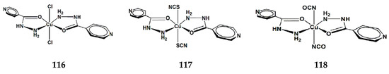 - Hanson, J.C.; Camerman, N.; Camerman, A. Structure of a Copper-Isoniazid Complex. J. Med. Chem. 1981, 24, 1369–1371. [Google Scholar] [CrossRef]
