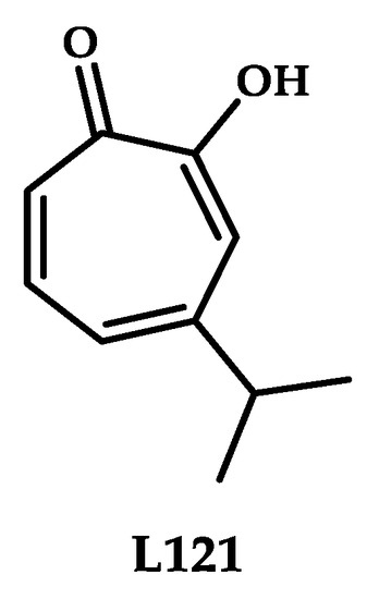 Elesclomol is an injectable chemotherapeutic agent ligand L13 with low molecular weight (Figure 5), which demonstrated clinical efficacy in acute myeloid leukemia [42]. This drug is also at the first stage of clinical trials as a therapeutic agent for leukemia [43]. Elesclomol has been proven to exert an antitumor effect by forming a Cu(II) coordination compound in situ, and the corresponding coordination compound causes oxidative stress inside the malignant cell. The redox reaction Cu(II)/Cu(I) disrupts mitochondrial respiration and causes ROS formation. Ultimately, coordination of copper with the elesclomol ligand disrupts the production and metabolism of cellular energy and triggers the path of mitochondrial apoptosis in tumor cells, leading to their death [44].