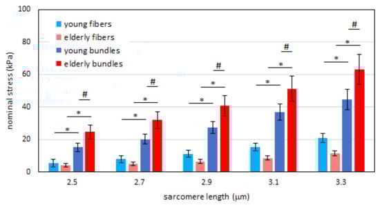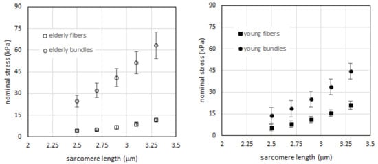 2.2. Passive Tension in Young Compared to Elderly Subjects Is Significantly Different in Bundles but Not in Single Muscle Fibers