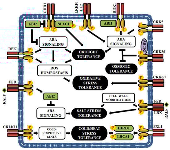 Abiotic stresses, such as drought, cold, salinity, ozone, metals, and UV-B radiations, have adverse impact on plant growth and development. Plants have various tactics to survive in continuously changing environmental conditions and one such is the RLK-mediated signaling circuit [183,184,185].
