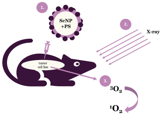 Schematic illustration of the general principle of X-ray photodynamic therapy (ScNP—scintillating nanoparticle, PS—photosensitizer).