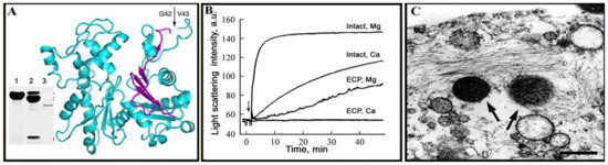 - Kazanina, G.A.; Mirgorodskaia, E.P.; Mirgorodskaia, O.A.; Khaitlina, S.Y.. ECP 32 proteinase: Characteristics of the enzyme, study of specificity. Bioorg. Khim. 1995, 21, 761–766. [Google Scholar] [PubMed]