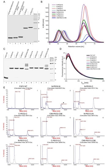 - Lobocki, M.; Zakrzewska, M.; Szlachcic, A.; Krzyscik, M.A.; Sokolowska-Wedzina, A.; Otlewski, J. High-Yield Site-Specific Conjugation of Fibroblast Growth Factor 1 with Monomethylauristatin E via Cysteine Flanked by Basic Residues. Bioconjug. Chem. 2017, 28, 1850–1858. [Google Scholar] [CrossRef]