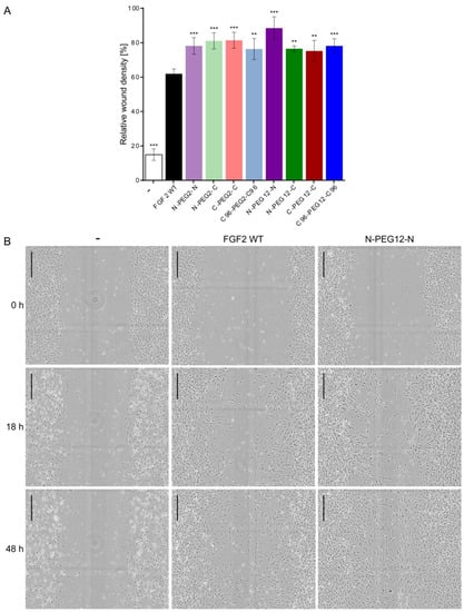 - Decker, C.G.; Wang, Y.; Paluck, S.J.; Shen, L.; Loo, J.A.; Levine, A.J.; Miller, L.S.; Maynard, H.D. Fibroblast growth factor 2 dimer with superagonist in vitro activity improves granulation tissue formation during wound healing. Biomaterials 2016, 81, 157–168. [Google Scholar] [CrossRef] [PubMed]