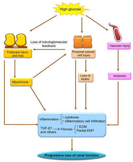 - Ling, L.; Chen, L.; Zhang, C.; Gui, S.; Zhao, H.; Li, Z. 2018 High glucose induces podocyte epithelial-to-mesenchymal transition by demethylation-mediated enhancement of MMP9 expression. Mol. Med. Rep. 2018, 17, 5642–5651. [Google Scholar]