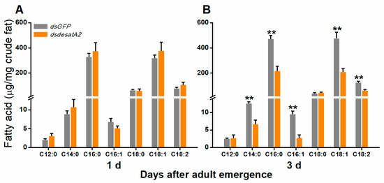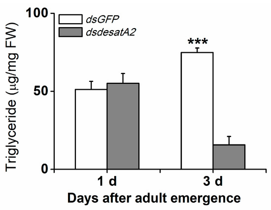 - Wang, Y.; da Cruz, T.C.; Pulfemuller, A.; Grégoire, S.; Ferveur, J.F.; Moussian, B. Inhibition of fatty acid desaturases in Drosophila melanogaster larvae blocks feeding and developmental progression. Arch. Insect Biochem. Physiol. 2016, 92, 6–23. [Google Scholar] [CrossRef] [PubMed]
