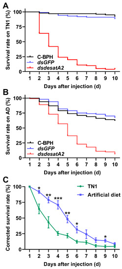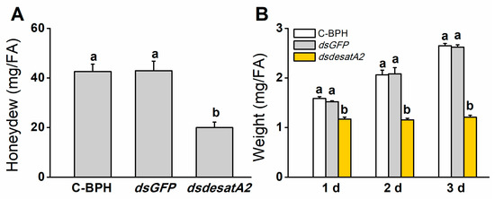 2.2. Knockdown of Nlug-desatA2 Impairs BPH Feeding, Growth and Survival