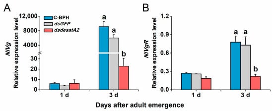 2.1. Knockdown of Nlug-desatA2 Changes the Profile of Fatty Acids in BPH Female Adults