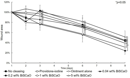 - Takayama, T.; Ishihara, M.; Sato, Y.; Nakamura, S.; Fukuda, K.; Murakami, K.; Yokoe, H. Bioshell calcium oxide (BiSCaO) for cleansing and healing of pseudomonas aeruginosa-infected wounds in hairless rats. Bio-Med. Mater. Engineer. 2020, in press. [Google Scholar]