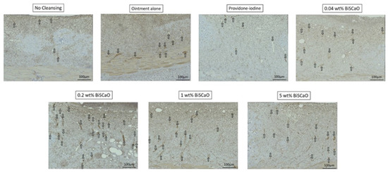 4.3. Applications of Various Concentrations of BiSCaO and Povidone Iodine Ointment to P. aeruginosa-Infected Wounds In Vivo