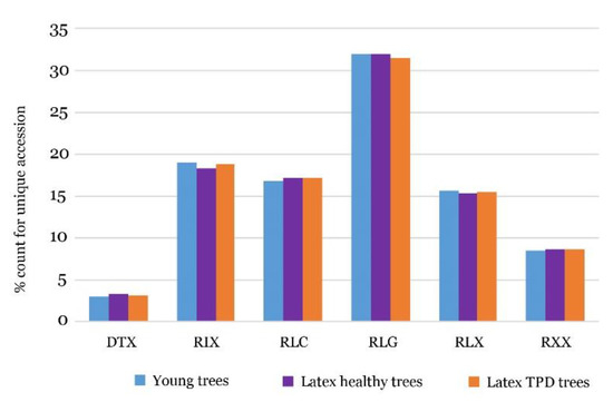 Several de novo genomes of rubber clones, with contrasting latex physiology, are available such as Reyan 7-33-97 [4], RRIM 600 [18], BPM 24 [19]; PB 260 [20,21] and GT 1 [5]. The rubber tree genome is large and complex to assemble because of its high heterozygosity, whole genome duplication and transposable element (TE) content [4,5]. TEs, first described in 1931 by the Nobel Prize winner Barbara McClintock, are also known as “jumping genes”. Transposition is often neutral, but their mutagenic potential is now demonstrated through genetic and epigenetic mechanisms, in the establishment and/or alteration of gene regulatory networks, in the modification of phenotypes and in the possible generation of adaptive genetic variations [22]. TE exaptation, which is the transformation of the repeated elements into a novel host gene, or a promoter region, is consistent with their role as “engines of plant genome evolution” [23,24]. TEs are classified hierarchically by subdividing them into Classes, Orders, Super-families, Lineages and Families [25]. Class I, corresponds to retrotransposons (LTR (Long Terminal Repeat), PLE, LINE (Long Interspersed Nuclear Element) and SINE (Short Interspersed Nuclear Element)), while Class II comprises DNA transposons (TIR (Terminal Inverted Repeat), Crypton, Helitron and Maverik). This classification system has been successfully used in the TE classification of several plant species [25,26,27,28,29,30,31]. In plant genomes, LTR retrotransposons are present in large numbers and classified according to the protein sequence [32], with two evolutionary distinct Superfamilies, Ty3/gypsy (Athila, Tat, Galadriel, Reina, CRM/CR, and Del/Tekay among others) and Ty1/copia (TAR/Tork, Angela/Tork, Ikeros/Tork, Maximus/Sire, Ivana/Oryco, Ale/Retrofit and Bianca, among others) [33]. However, the transcription and movement of these retroelements have been observed in response to development and environmental cues, due to the presence of cis-regulatory patterns, which could facilitate plant adaptation by giving new regulatory patterns to genes [23]. Small interfering RNAs (siRNAs), which trigger RNA-directed DNA methylation (RdDM), effectively silence TEs [34]. Our previous studies on populations of small RNAs in Hevea clone PB 260 showed alterations in the microtranscriptome of laticifers in response to environmental cues and TPD [35]. A shift in the distribution of small RNAs has been observed, with peaks of small RNAs of 24- and 21-nt, in healthy and TPD-affected trees of clone PB 260, respectively. This suggests a shift from transcriptional regulation in healthy trees to post-transcriptional regulation in trees affected by TPD [35,36,37]. Very recently, it has been shown that 21-nt small RNAs do not originate from MIR genes and could therefore be classified as siRNAs [20]. In addition, given the size of these siRNAs (21-nt), they could be responsible for the degradation of target transcripts by post-transcriptional cleavage, or the maintenance of TE silencing by epigenetically activated small interfering RNAs (easiRNAs) [34].