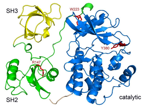 - Sicheri, F.; Kuriyan, J. Structures of Src-family tyrosine kinases. Curr. Opin. Struct. Biol. 1997, 7, 777–785. [Google Scholar] [CrossRef]