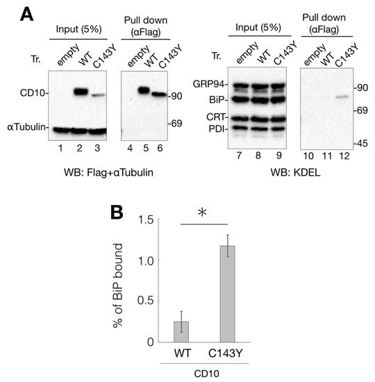 2.3. BiP, an ER-Resident Hsp70 Chaperone, Interacts with CD10 C143Y but Not with WT CD10