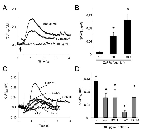 2.2. CaPP Particles Induced Cytosolic Calcium Variation in Tobacco BY-2 Cells