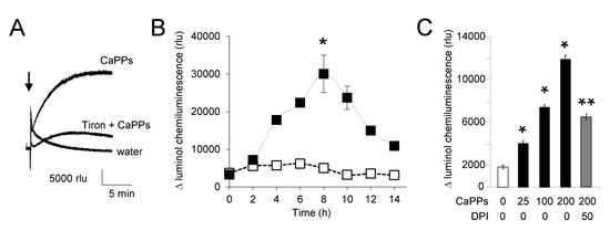2.3. CaPPs Induced a NADPH Oxidase-Dependent ROS Production