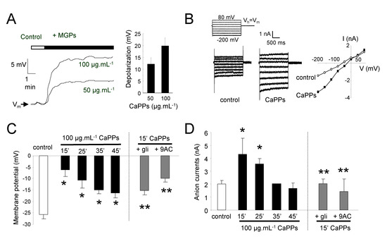 2.4. CaPPs Induce a Depolarization of Plasma Membrane Due to Anion Channel Activation