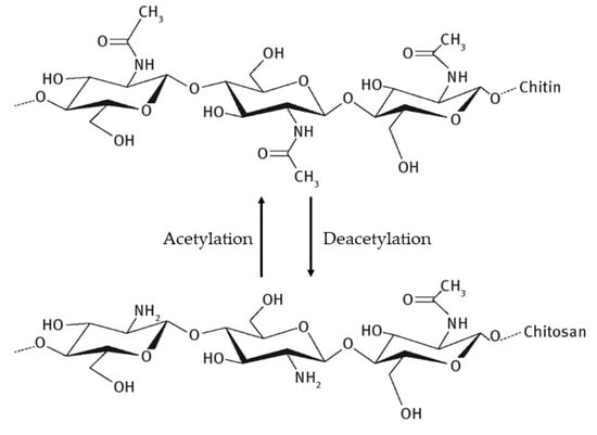 Chitin is a natural polysaccharide found in fungi cell walls as well as in crustacean and insect exoskeletons and is the second most abundant biopolymer in nature after cellulose. Chitin is converted to chitosan by deacetylation that involves the removal of the acetyl group [9,10].