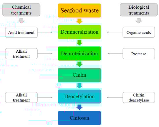 Biological methods often used for chitin extraction are enzymatic deproteinization and fermentation using microorganisms [61,62].