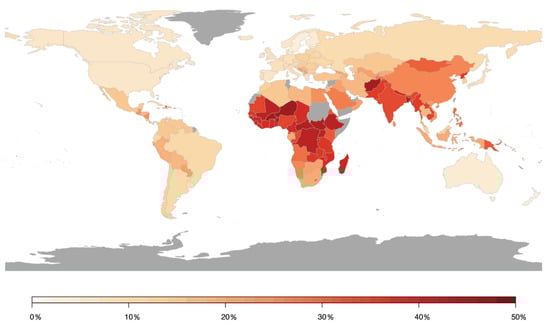 Population attributable risk of cerebrovascular disease associated with air pollution worldwide. Estimates from Institute for Health Metrics and Evaluation (IHME). Reused from Lee et al. [55] with permission according to the terms of the Creative Commons Attribution Non-Commercial License (http://creativecommons.org/licenses/by-nc/4.0/).