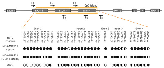 - Moreau, P.; Mouillot, G.; Rousseau, P.; Marcou, C.; Dausset, J.; Carosella, E.D. HLA-G gene repression is reversed by demethylation. Proc. Natl. Acad. Sci. USA 2003, 100, 1191–1196. [Google Scholar] [CrossRef] [PubMed]