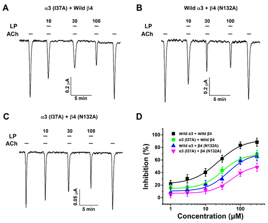 3.5. Inhibitory Effect of Lupeol on Double-Mutant α3β4 (I37A/N132A) nACh Receptors