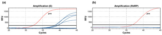 - Corman, V.M.; Landt, O.; Kaiser, M.; Molenkamp, R.; Meijer, A.; Chu, D.K.; Bleicker, T.; Brünink, S.; Schneider, J.; Schmidt, M.L.; et al. Detection of 2019 novel coronavirus (2019-nCoV) by real-time RT-PCR. Eurosurveillance 2020, 25, 2000045. [Google Scholar] [CrossRef] [PubMed]