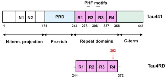 - Barghorn, S.; Biernat, J.; Mandelkow, E. Purification of Recombinant Tau Protein and Preparation of Alzheimer-Paired Helical Filaments In Vitro. In Amyloid Proteins; Humana Press: Totowa, NJ, USA, 2004; Volume 299, pp. 035–052. ISBN 978-1-59259-874-8. [Google Scholar]