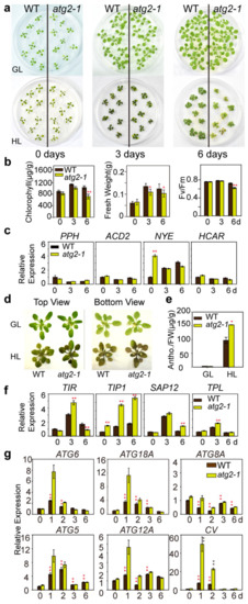 2.5. Atg2-1 Was Highly Sensitive to High Light Intensity