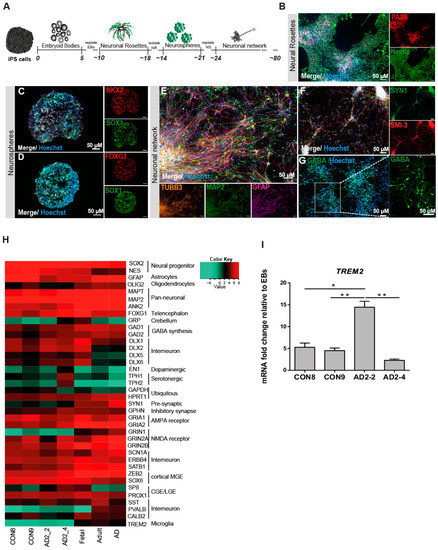 - Hossini, A.M.; Megges, M.; Prigione, A.; Lichtner, B.; Toliat, M.R.; Wruck, W.; Schröter, F.; Nuernberg, P.; Kroll, H.; Makrantonaki, E.; et al. Induced pluripotent stem cell-derived neuronal cells from a sporadic Alzheimer’s disease donor as a model for investigating AD-associated gene regulatory networks. BMC Genomics 2015, 16, 84. [Google Scholar] [CrossRef]