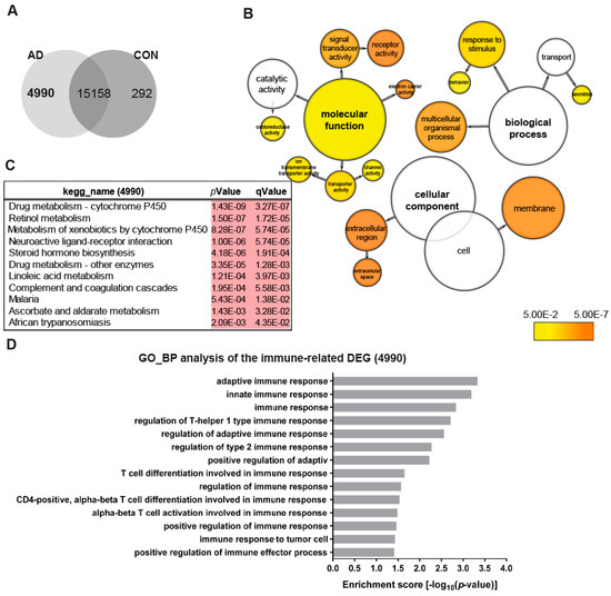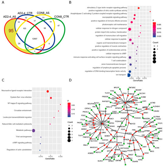 2.2. The AD Neuronal Network Shows a Distinct Gene Expression Associated with Metabolism and Immune-Related Pathways