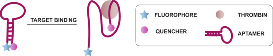 - Hamaguchi, N.; Ellington, A.; Stanton, M. Aptamer beacons for the direct detection of proteins. Anal. Biochem. 2001, 294, 126–131. [Google Scholar] [CrossRef]