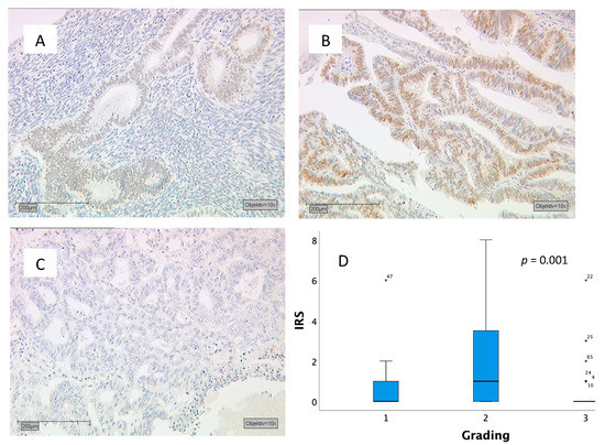 - Shabani, N.; Kuhn, C.; Kunze, S.; Schulze, S.; Mayr, D.; Dian, D.; Gingelmaier, A.; Schindlbeck, C.; Willgeroth, F.; Sommer, H.; et al. Prognostic significance of oestrogen receptor alpha (ERalpha) and beta (ERbeta), progesterone receptor A (PR-A) and B (PR-B) in endometrial carcinomas. Eur. J. Cancer 2007, 43, 2434–2444. [Google Scholar] [CrossRef]