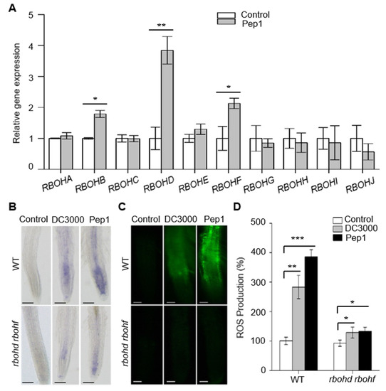2.3. RBOHD and ROBHF Are Required for Pep1-Induced ROS Production