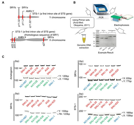 Chicago/Turabian StyleOh, Sooeun, Kyoungmi Min, Myungshin Kim, and Suk Kyeong Lee. 2020. "Sex Chromosomes Are Severely Disrupted in Gastric Cancer Cell Lines" International Journal of Molecular Sciences 21, no. 13: 4598. https://doi.org/10.3390/ijms21134598