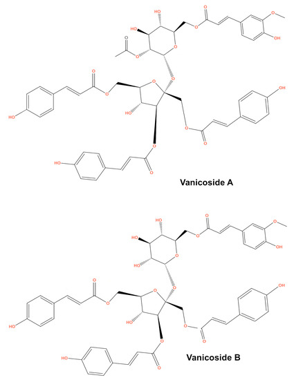 - Zimmermann, L. Vanicosides A and B, Protein kinase C inhibitors. J. Nat. Prod. 1994, 57, 236–242. [Google Scholar] [CrossRef]