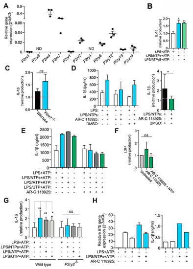 2.4. Nucleotides Activate P2Y2 Purinergic Receptor to Increase IL-1β Production