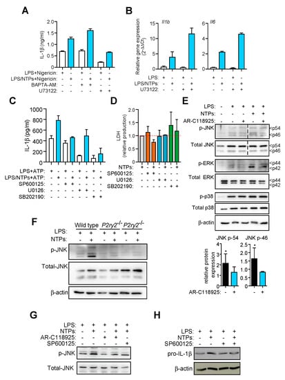2.5. P2Y2R-Induced JNK Activation is Responsible for Increased in IL-1β Production