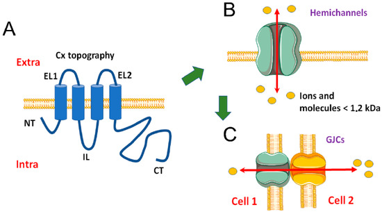 - Aasen, T.; Johnstone, S.; Vidal-Brime, L.; Lynn, K.; Koval, M. Connexins: Synthesis, Post-Translational Modifications, and Trafficking in Health and Disease. Int. J. Mol. Sci. 2018, 19, 1296. [Google Scholar] [CrossRef]