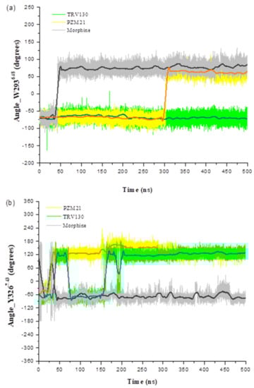 - Yuan, S.; Palczewski, K.; Peng, Q.; Kolinski, M.; Vogel, H.; Filipek, S. The mechanism of ligand-induced activation or inhibition of mu- and kappa-opioid receptors. Angew. Chem. 2015, 54, 7560–7563. [Google Scholar] [CrossRef]
