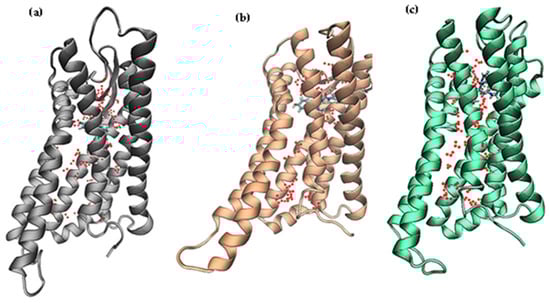 - Yuan, S.; Filipek, S.; Palczewski, K.; Vogel, H. Activation of G-protein-coupled receptors correlates with the formation of a continuous internal water pathway. Nat. Commun. 2014, 5, 1–10. [Google Scholar] [CrossRef] [PubMed]